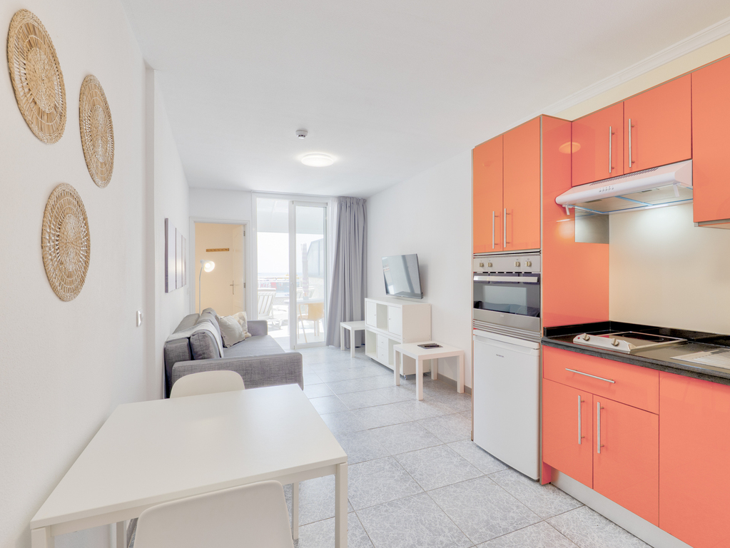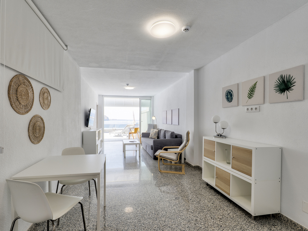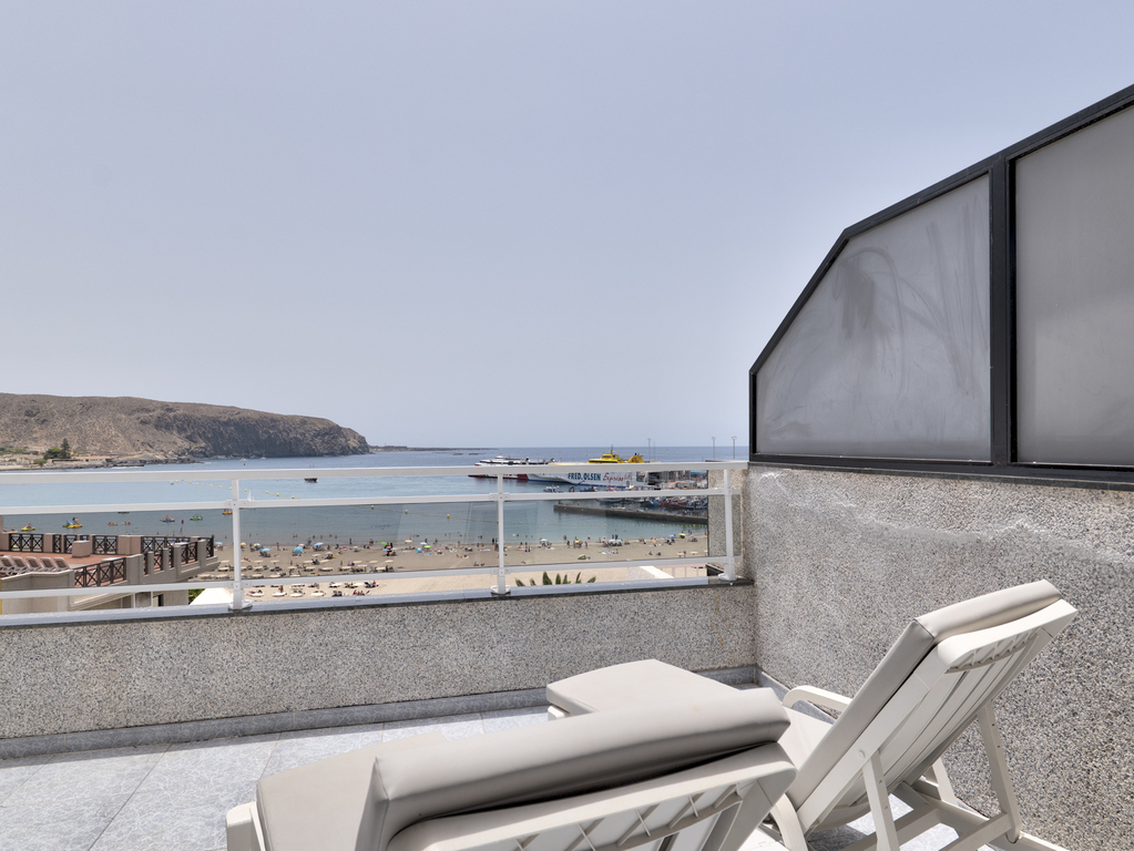 Este apartamento amplio y luminoso es una joya para quienes sueñan con desayunar frente al mar o tomar el sol en la tranquilidad de su propia terraza privada. Su gran terraza amueblada con mesa, sillas y cómodas hamacas ofrece unas vistas privilegiadas al océano Atlántico y al puerto de Los Cristianos. Es el lugar perfecto para relajarse, leer, desconectar y disfrutar del clima inmejorable de Tenerife durante todo el año. Dispone de un dormitorio, cocina equipada, salón-comedor con acceso directo a la terraza.