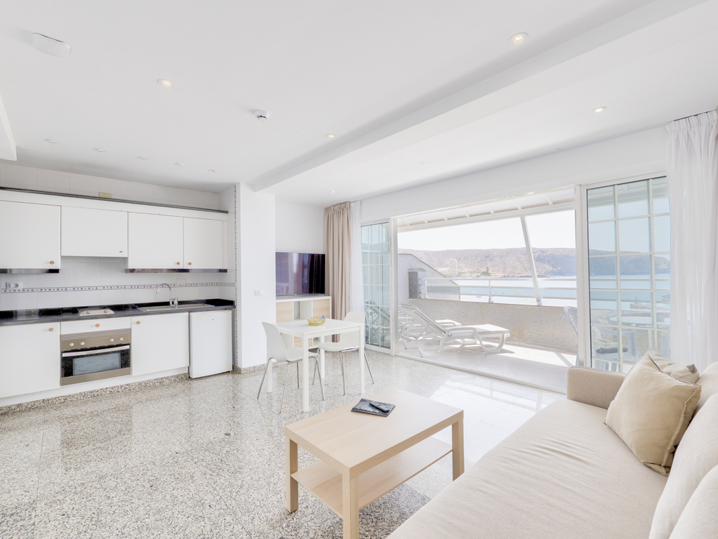 En este luminoso apartasmento puedes despierta cada mañana con el azul del mar frente a ti. Nuestro apartamento de 1 dormitorio en planta alta te ofrece una amplia terraza con hamacas, sombrilla y vistas espectaculares a la playa. Perfecto para relajarte al sol y disfrutar del aire libre. A solo pasos de la arena, el puerto y el mejor ambiente costero.