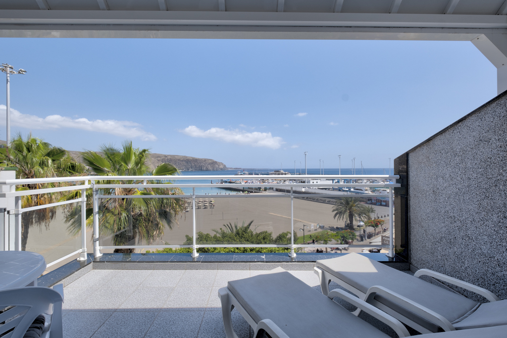 Estudio moderno y luminoso con una amplia terraza equipada con hamacas, sombrilla y espectaculares vistas al mar. Perfecto para relajarte al sol y disfrutar de la brisa marina. Totalmente equipado para una estancia cómoda en Los Cristianos, a solo unos pasos de la playa y el puerto.